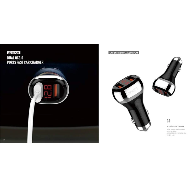 شارژر فندکی الدینیو مدل C2 به همراه کابل تبدیل USB-C *اصلی*